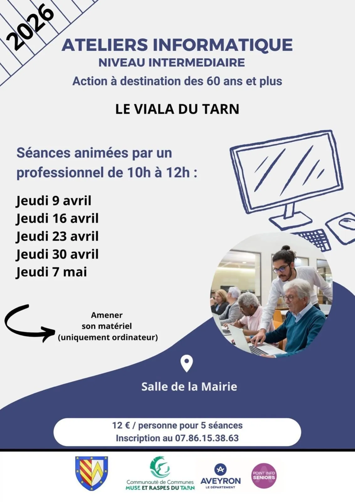 Tarif : 12 € par personne pour les 5 séances (amener son propre ordinateur).